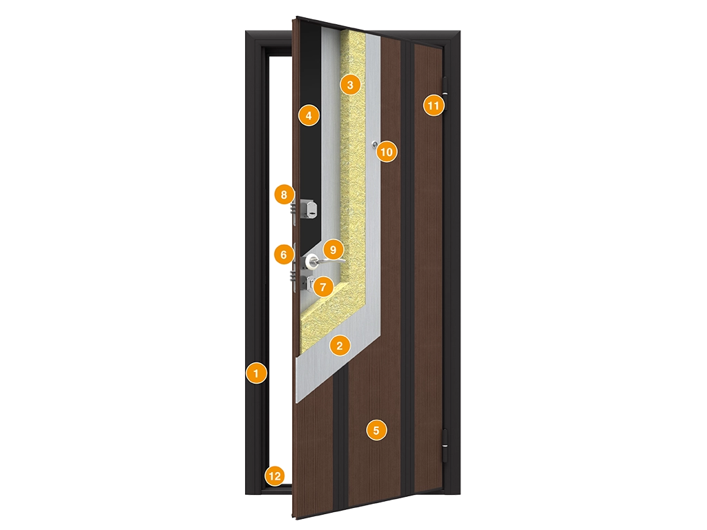 Стальная дверь «Ламистайл» подходит для обустройства офисных и жилых помещений. Она ударопрочная, надежная и выносливая. Полотно «сэндвич» заполнено негорючей минераловатной плитой, не впитывающей влагу.