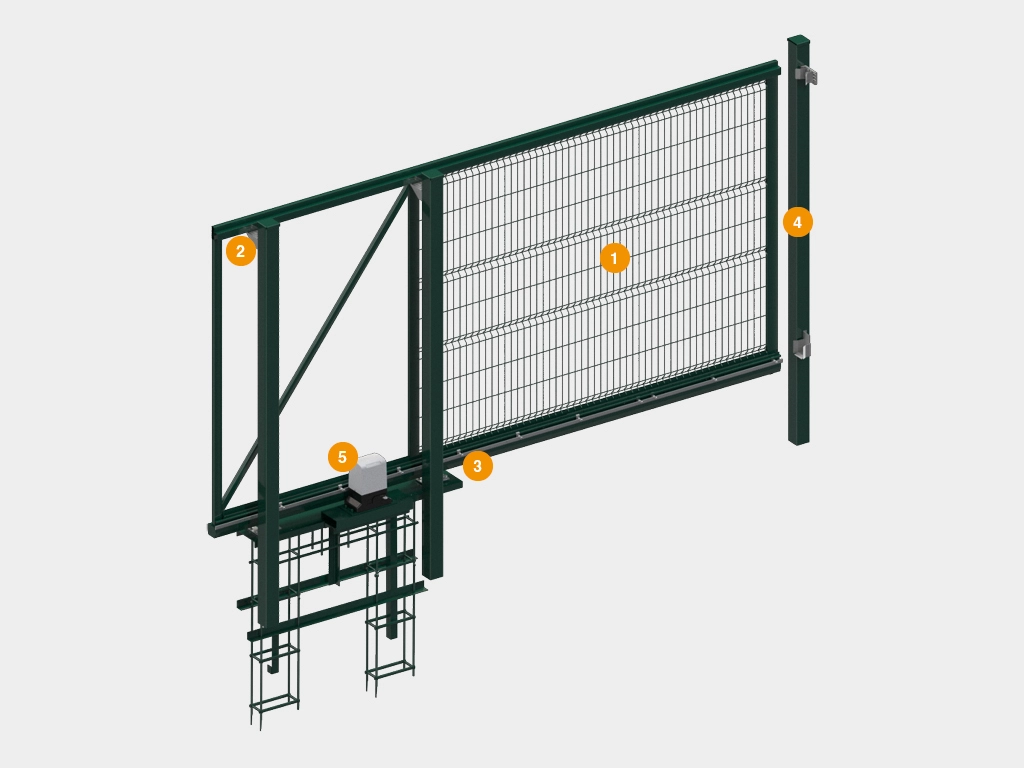 Откатные ворота со стальной рамой и с заполнением сварной сеткой